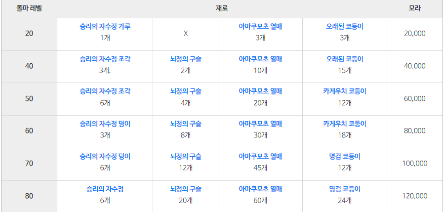 | 단계 | 기초 공격력 | 원소 충전 효율 |