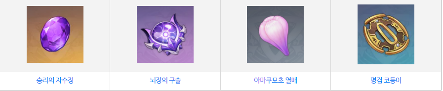 승리의 자수정을 제외하고는 모두 이나즈마 지역에서 획득가능합니다.