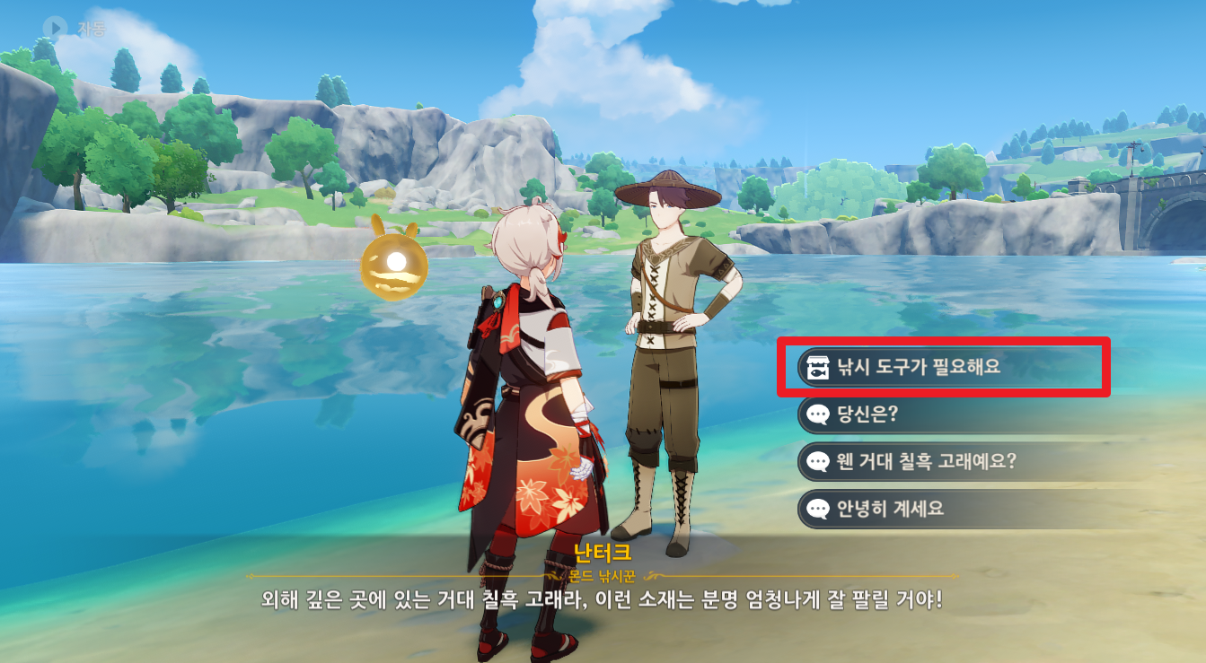 낚시를 하기 위해서는 우선 몬드에서 「고기떼 대폭팔」 임무를 진행해야 낚시가 가능해 집니다.