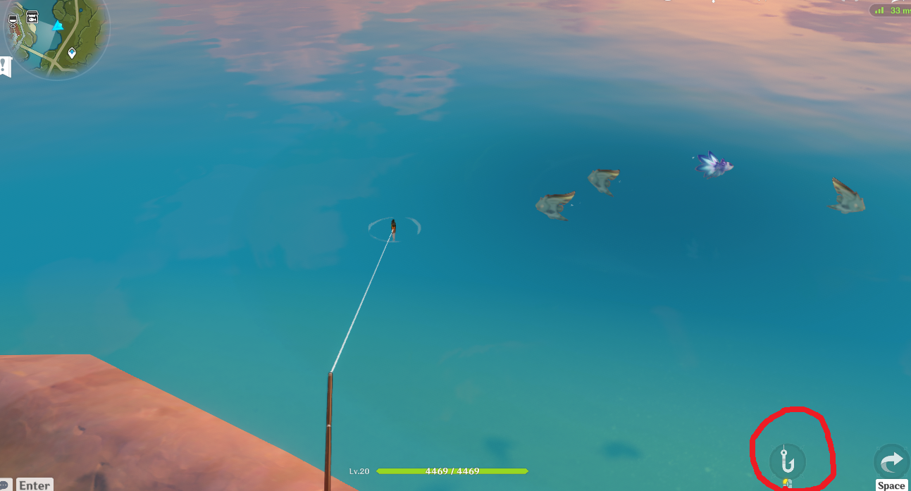 원신 2.1 업데이트로 낚시가 가능해졌습니다. 낚시를 통해 한정 낚싯대 획등과 라이덴이 사용할수 있는 무기 어획과 어획재련재료인 '아코의 사케마스'를 얻을 수 있습니다.