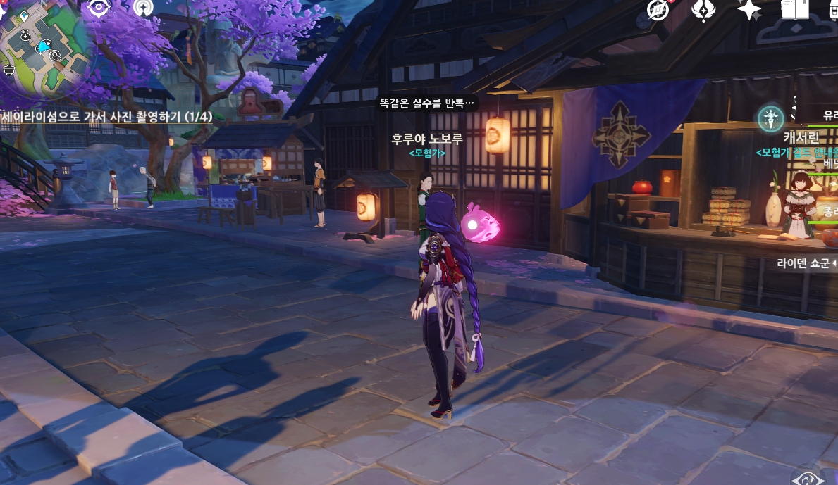세이라이의 옛추억 공략 (사진촬영하기) 원신 이나즈마 퀘스트