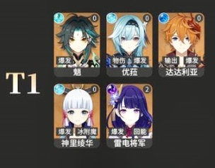 1티어 : 소, 유라, 타르탈리아, 아야카, 라이덴은 메인딜러이며 전용무기가 있는 캐릭터들입니다. 요이미야도 전용무기는 보유하고 있지만 원소폭팔스킬이 좋지않다는 평이 많아서인지 출시부터 말이 많았는데 그때문인지 2티어에 속합니다.