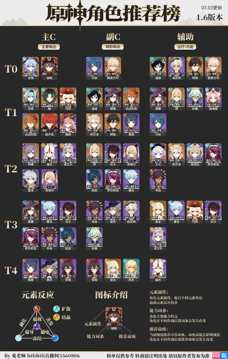 우선 아래의 티어표는 중국에서 만들어진 티어표이며 절대적인 기준은 아니니 재미나 참고용으로만 보시면 좋을 것 같습니다.캐릭터 등급이라는게 우리가 시험을 보는것 처럼 정확한 점수를 매겨서 나눈 것이 아니기 때문에 사람마다 평가기준이 달라질수 있습니다.