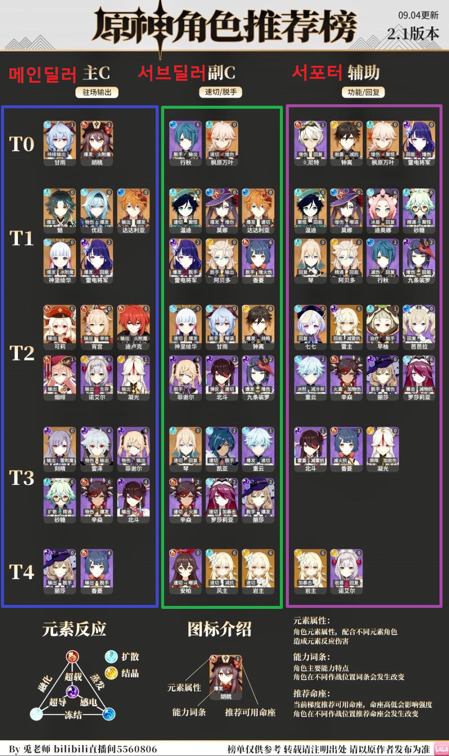 원신 재미로 보는 티어표 2.1 버전 최신 중국 티어표