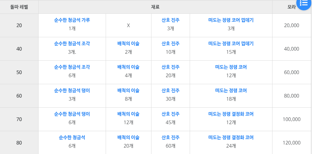 - 떠도는 정령 결정화 코어 : 떠도는 정령 드랍 및 합성 획득 가능