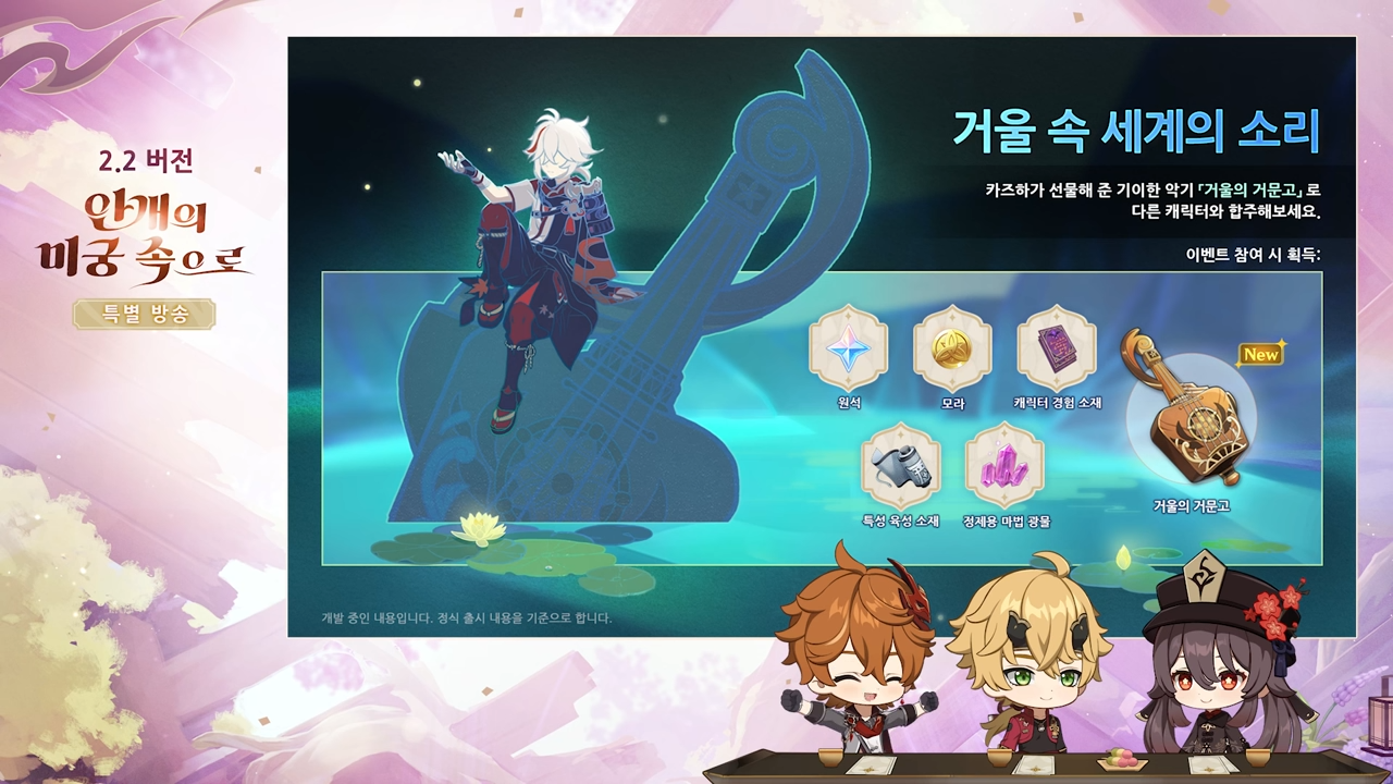 '거울 속 세계의 소리' 이벤트에서는 카즈하에게 거울의 거문고를 선물받을 수 있습니다.