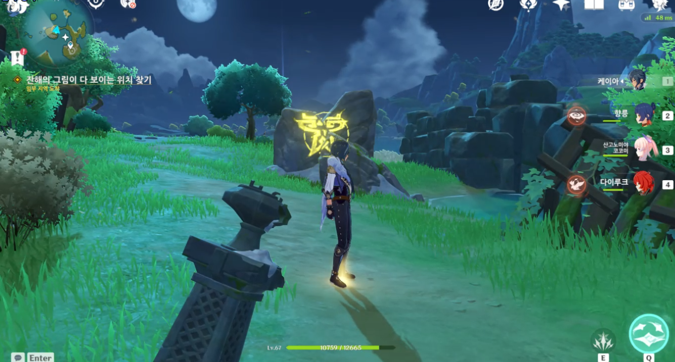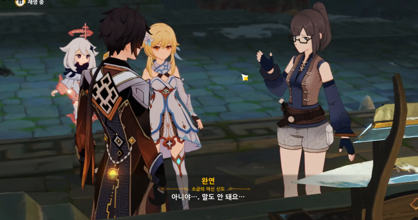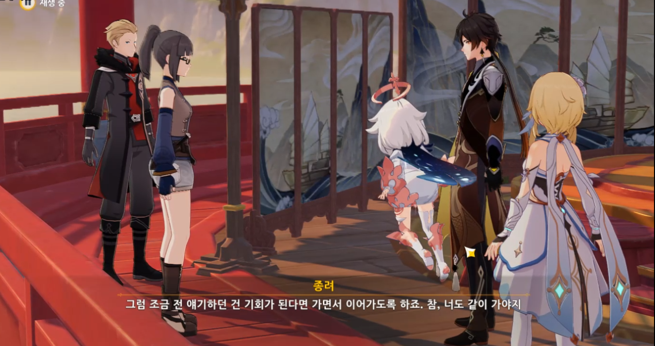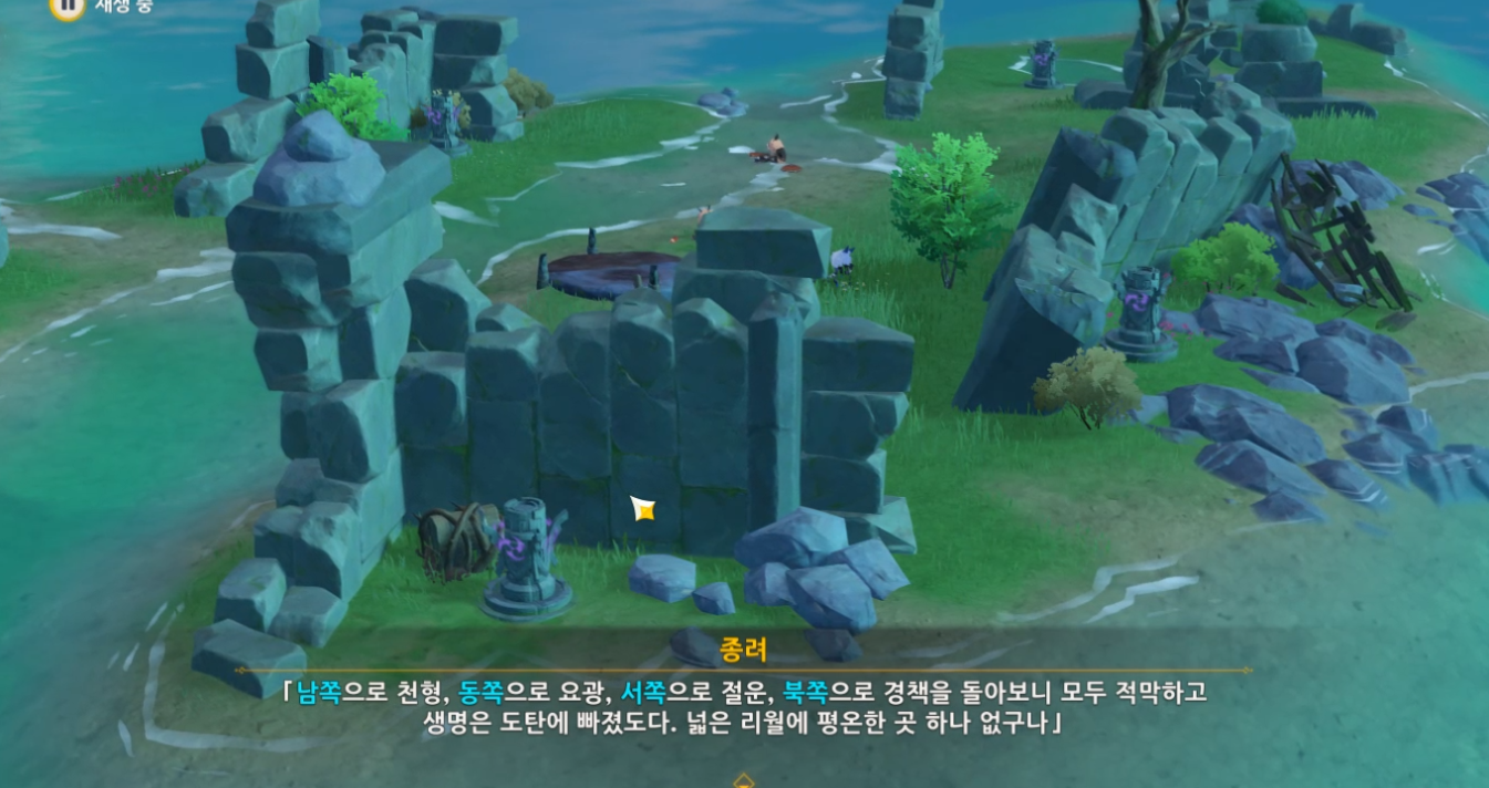 옛이야기의 장 제1막 종려 첫번째 전설임무를 열면 리월항 바다 중간에 있는 주전방으로 향하라고 뜹니다. 주전방으로 향하면 우연히 종려를 만나게 됩니다.