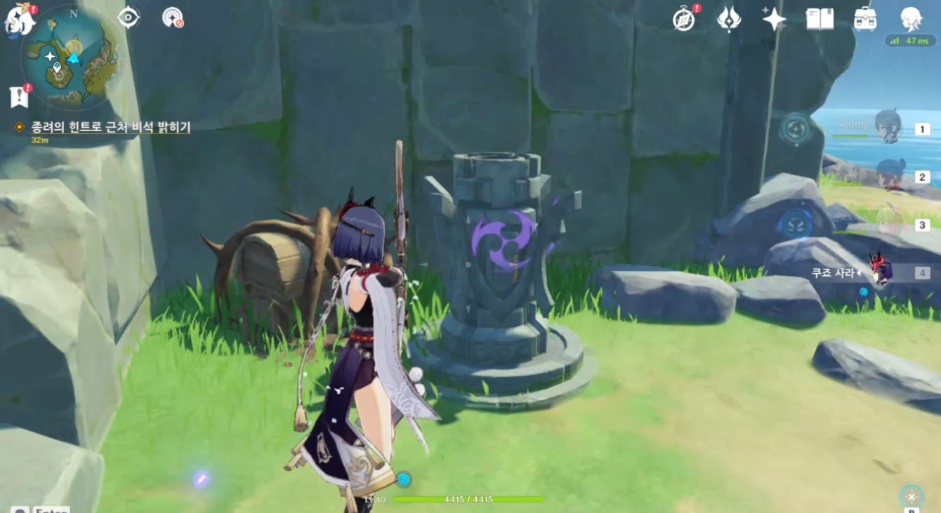 미니맵에 작은 노란 동그라미 안에서 제가 남쪽에 위치한 것을 볼수 있습니다. 남쪽에 위치한 기둥입니다.