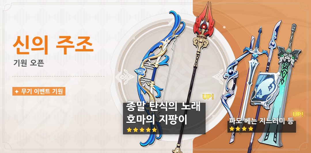 [원신] 2.2 호두 복각 픽업 4성 캐릭터, 무기픽업