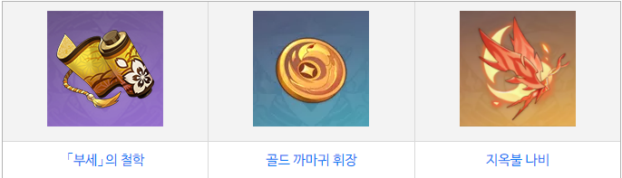 - 지옥불 나비 : 주간 보스 토벌 보상 LV.70이상 시뇨라, 이나즈마 메인스토리 임무 진행해야 시뇨라 주간보스 열림.
