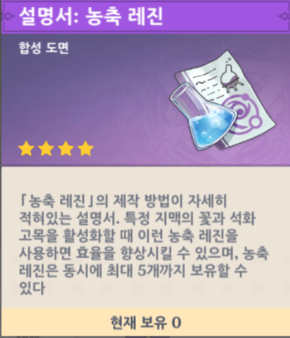 원신 농축레진 구하는 방법, 레시피, 재료, 사용법, 레벨