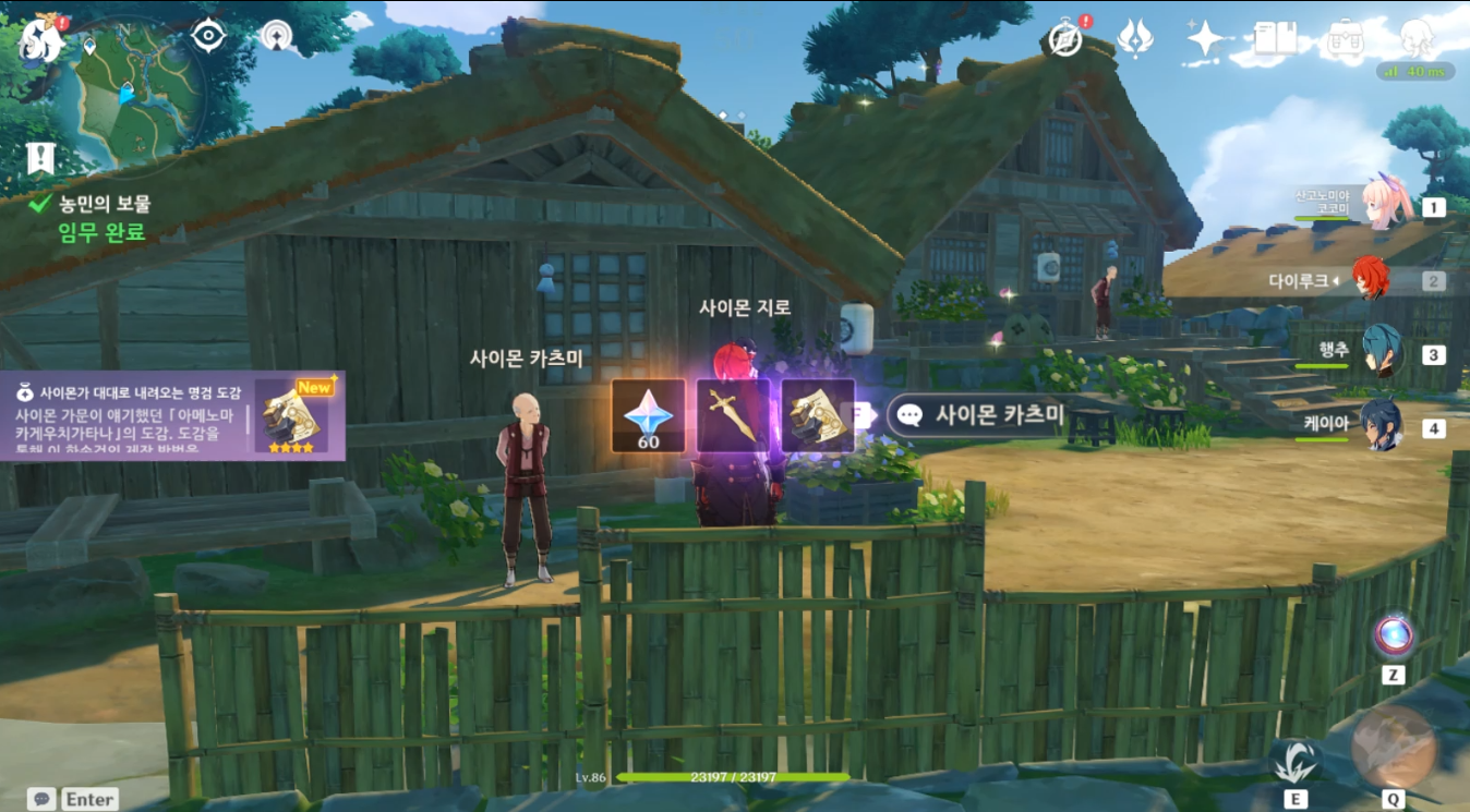 이나즈마 한손검 단조무기를 얻기위해서는 이나즈마 퀘스트 중 하나인 「농민의 보물」을 진행해야합니다. 「농민의 보물」 퀘스트를 받을 수 있는 방법을 알려드리도록 하겠습니다.