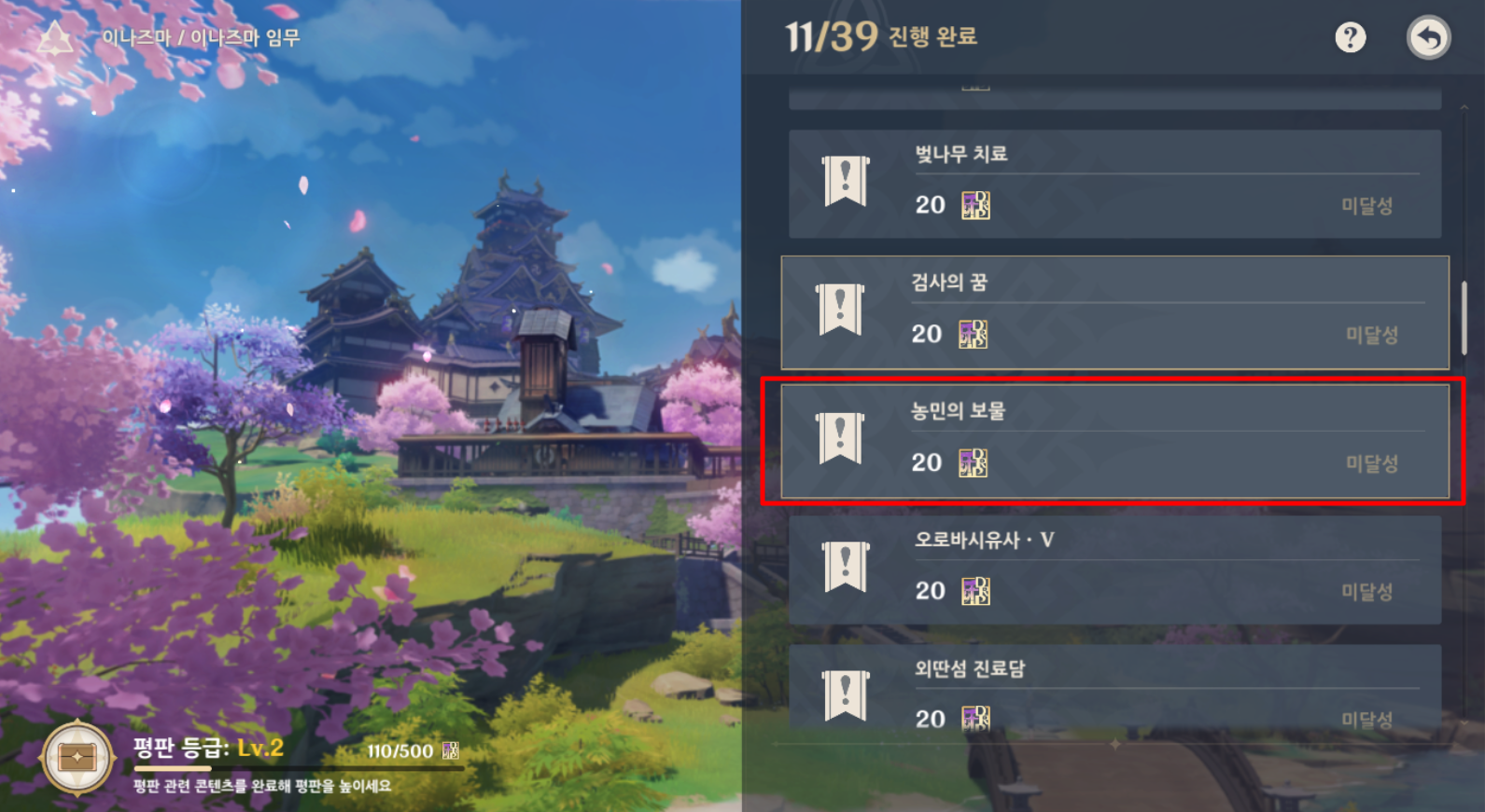 이나즈마 퀘스트 「농민의 보물」