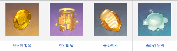 [원신] 요일별 캐릭터 특성 레벨업 재료(2.4버전 기준)