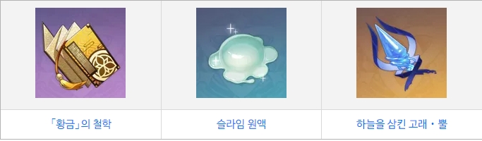 슬라임 원액 : LV.60 이상 슬라임 드랍, 슬라임 응축액, 슬라임청으로 합성 획득
