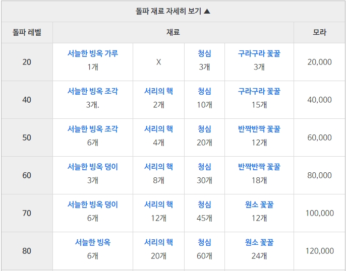 서늘한 빙옥 :LV.75 이상 얼음 나무 드랍, 서늘한 빙옥가루, 빙옥조각, 빙옥덩이으로 합성획득 가능.