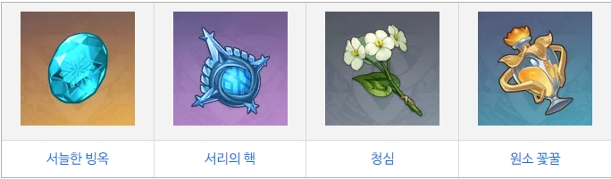[원신] 요일별 캐릭터 특성 레벨업 재료(2.4버전 기준)