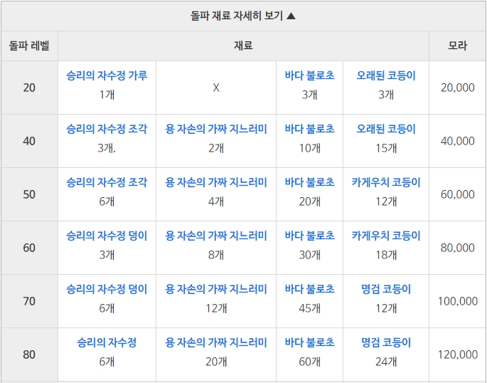 | 단계 | 기초 공격력 | 치명타 피해 |