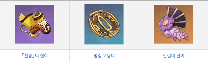 「천광」의 철학 : 특성육성소재, '보랏빛 정원' 비경에서 획득가능, 획득가능한 요일은 수요일, 토요일, 일요일