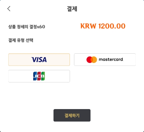 PC버전에서 결제하시면 위 3가지 종류의 카드만 결제가능합니다. 모바일에서는 다른 결제방식도 선택가능합니다.