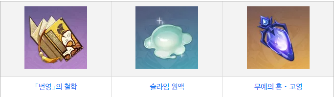 [원신] 캐릭터별 주간보스 재료 정리, 특성재료 (2.4버전 기준)