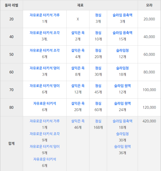 슬라임 원액 : LV.60 이상 슬라임 드랍, 합성 획득