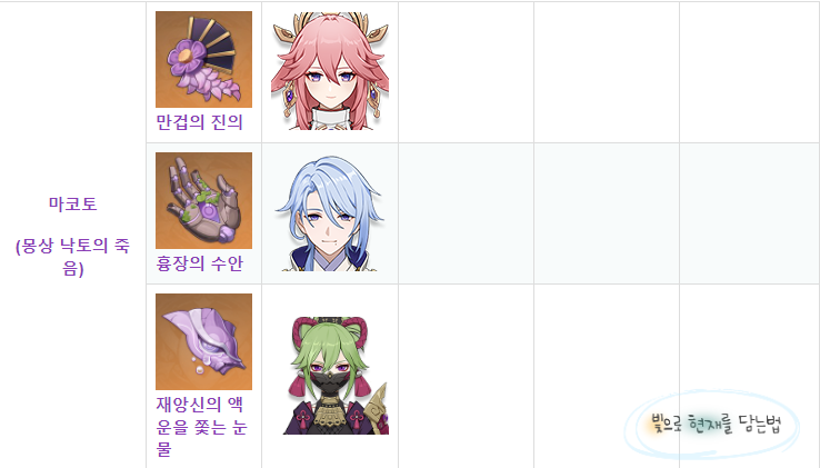 2022.05.31 - [원신] - [원신] 소 성유물 세팅 (돌파재료,무기,파티조합) 육성방법
