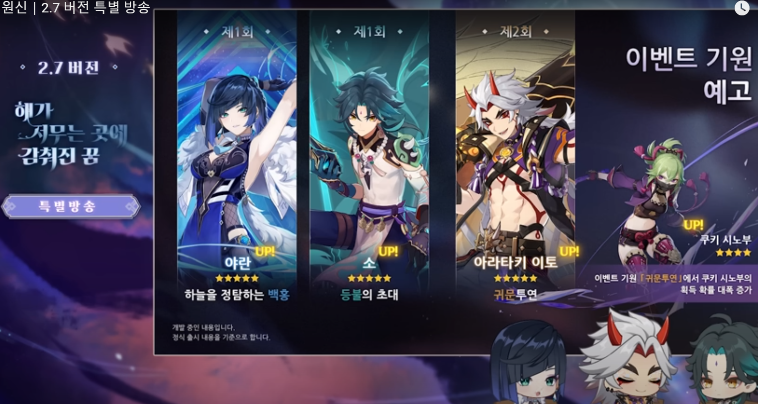 2.7 야란 다음 픽업, 2.8 픽업 캐릭터 예상