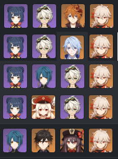 (타르탈리아,아야토,클레,호두,향릉,베넷,행추,종려)