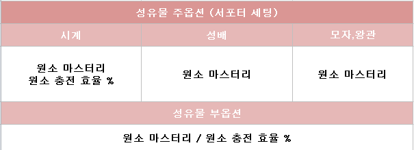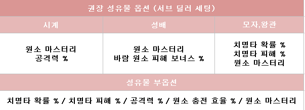 | 단계 | 기초 공격력 | 원소 마스터리 |