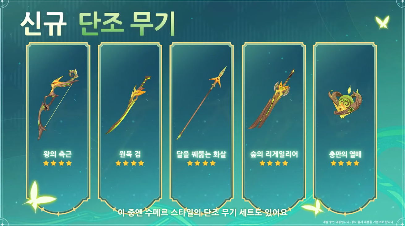 5성 사냥꾼의 길은 타이나리 전용무기로 보이며, 4성 메마른 연못은 이벤트 보상으로 획득가능한 배포무기 일듯 합니다.