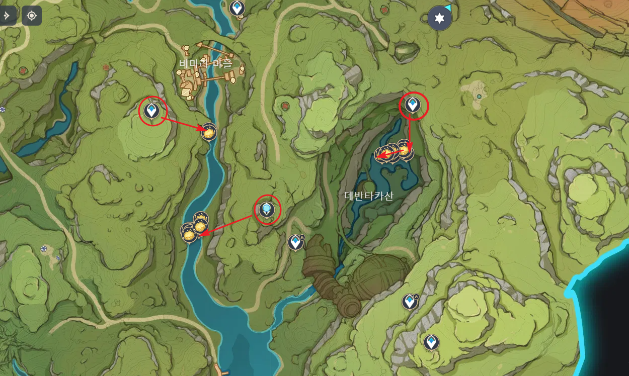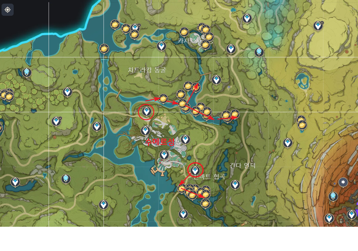 달연꽃 파밍시 타이나리를 파티에 넣으면 지도에 수메르 특산물이 손가락 표시되기 때문에 아이템 찾기가 쉬워집니다.