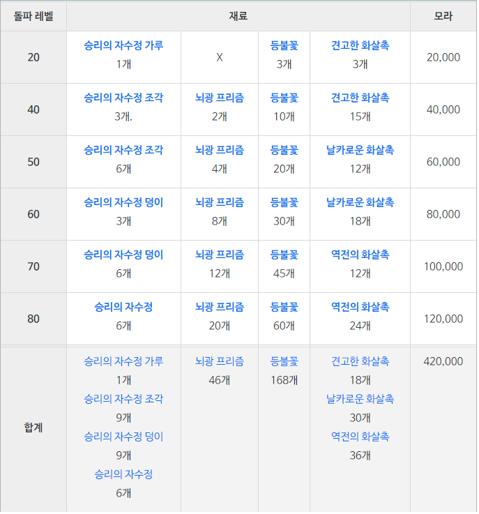 역전의 화살촉 : LV.60 이상 츄츄 궁수 드랍, 합성 획득