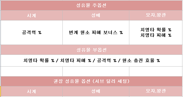 누구에게나 범용성 높은 성유물 세트 조합