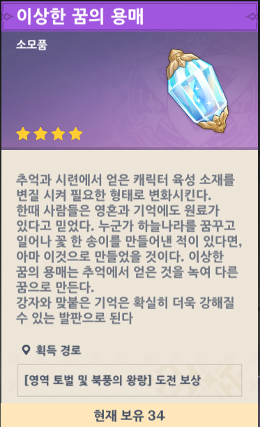 중앙대륙의 법구 원형 = 북대륙의 법구 원형1개 + 이상한 꿈의 용매2개