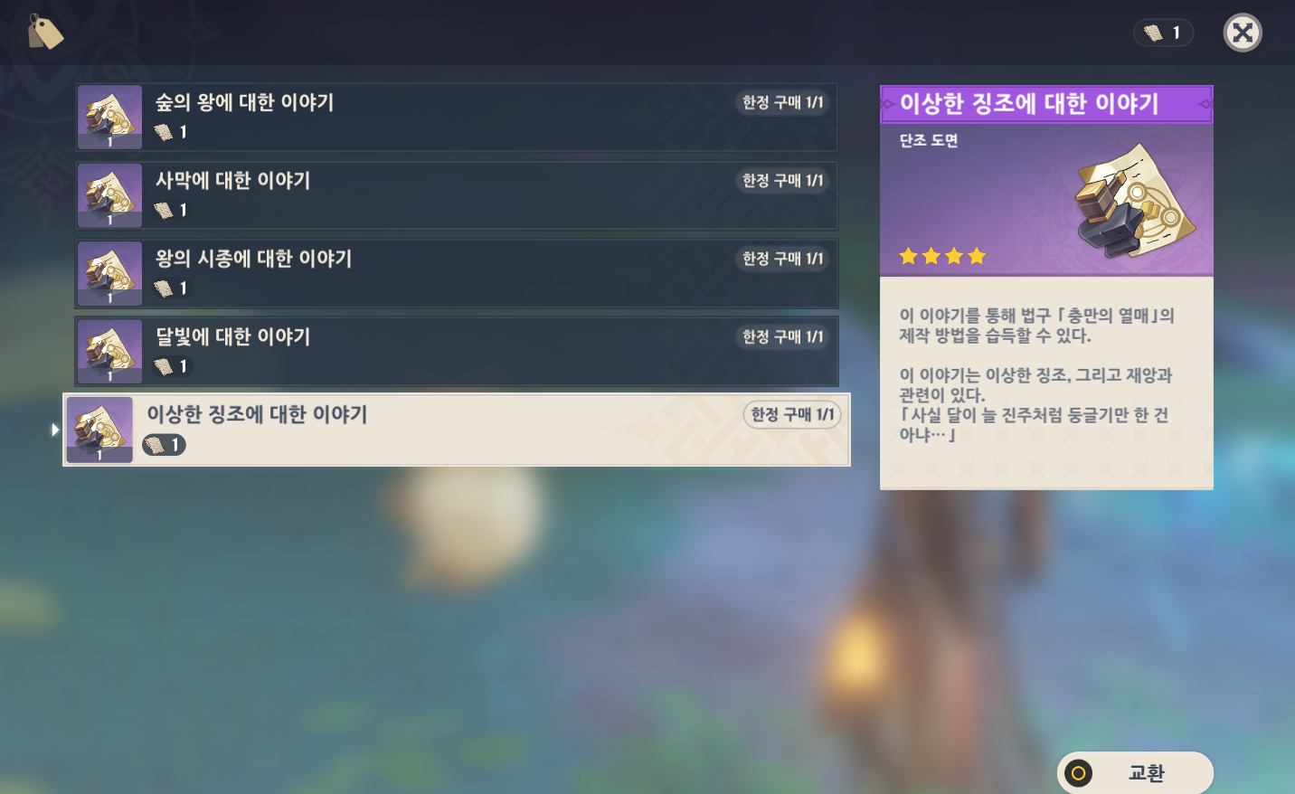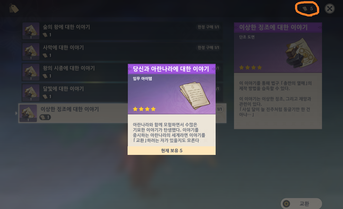단조무기 제작법과 교환하기 위해서는 '당신과 아란나라에 대한 이야기' 아이템이 필요합니다.