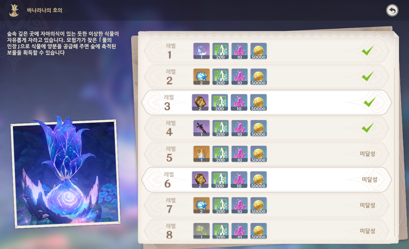 꿈나무로 다가가서 열면 위 사진과 같은 보상을 풀의인장과 교환하여 얻을 수 있습니다.