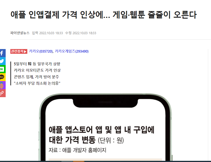 과금 가격 인상 (플랫폼 가격정책/애플/구글)