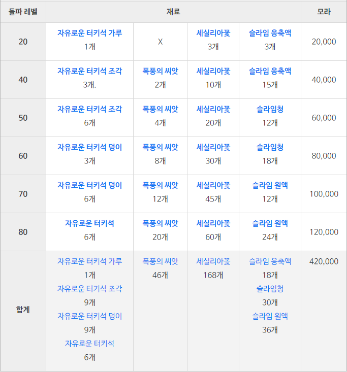 슬라임 원액 : LV.60 이상 슬라임 드랍, 합성 획득