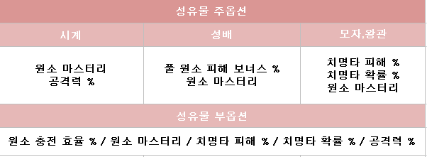 장착하고 원소 반응을 일으키는 것만으로 파티 구성에 따라 180~230pt[19]의 원소 마스터리와 14~0%의 공격력을 얻을 수 있는 성유물.