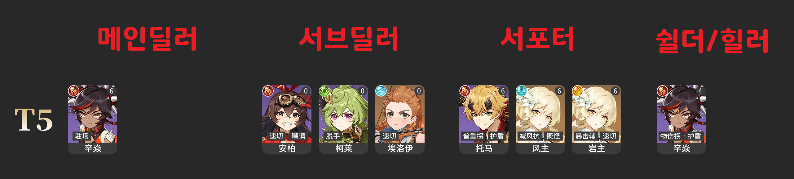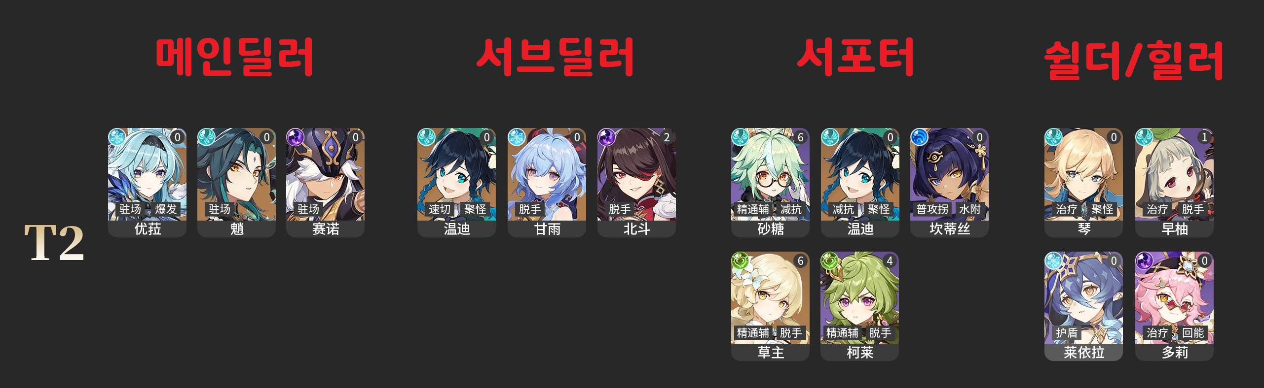 서브딜러 : 야란(물). 나히다(풀), 행추(물), 향릉(불)