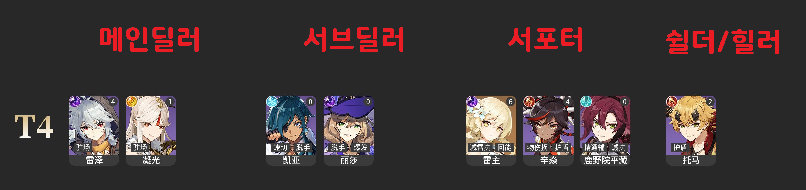 서브딜러 : 타이나리(풀), 야에미코(번개), 알베도(바위), 피슬(번개)