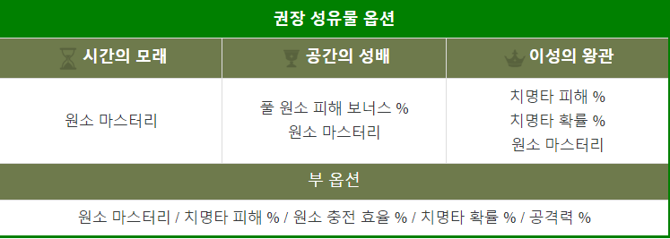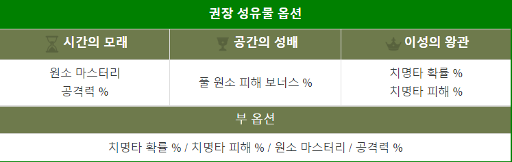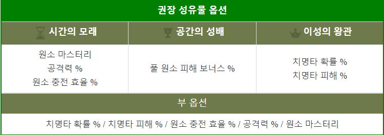 캐릭터별 성유물 세팅 스펙(스탯) - 풀원소 편