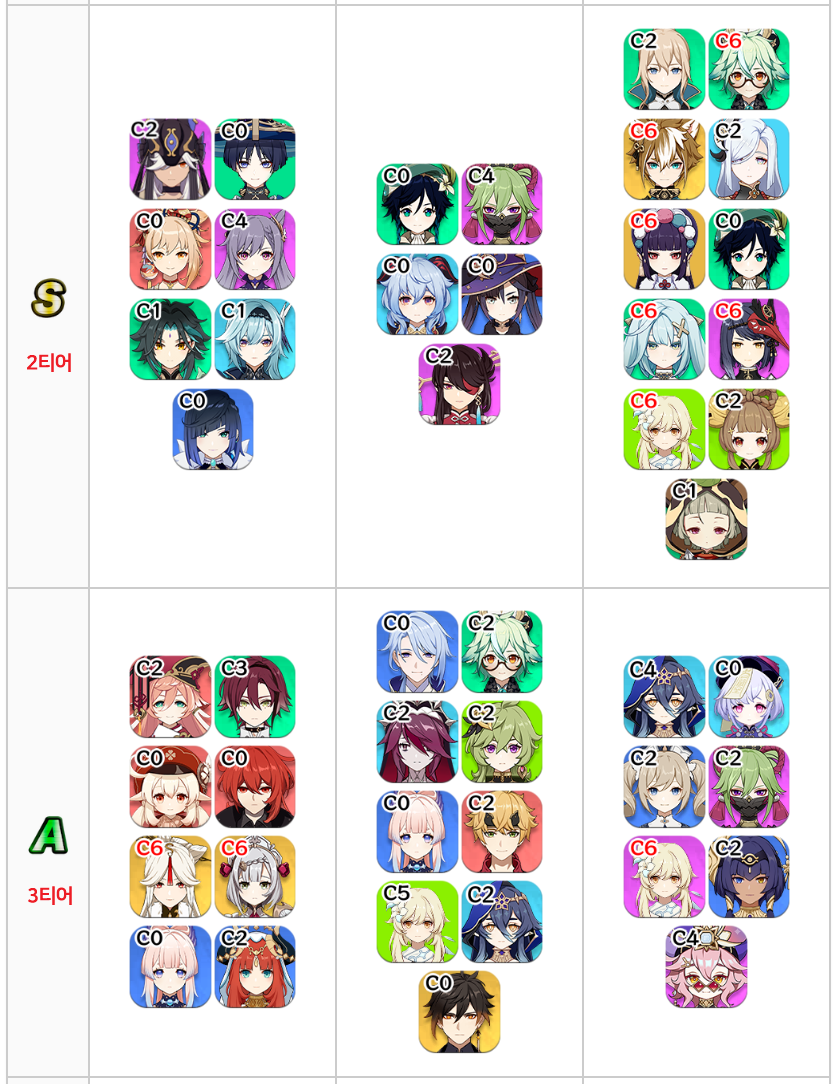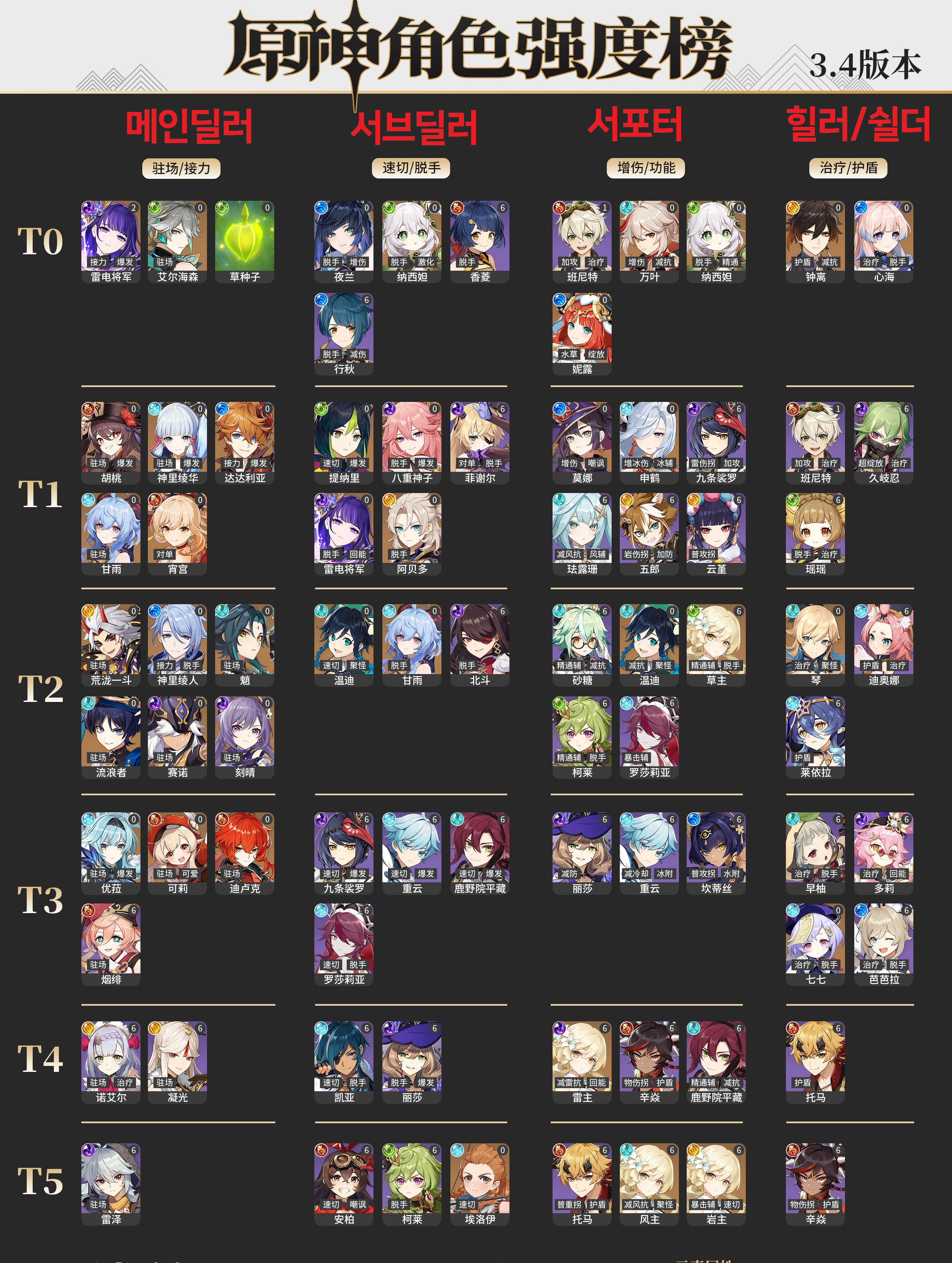 3.4 캐릭터 티어표,등급표(중국)