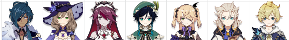 시문 : 로자리아, 리사, 벤티, 알베도, 케이아, 피슬, 미카
