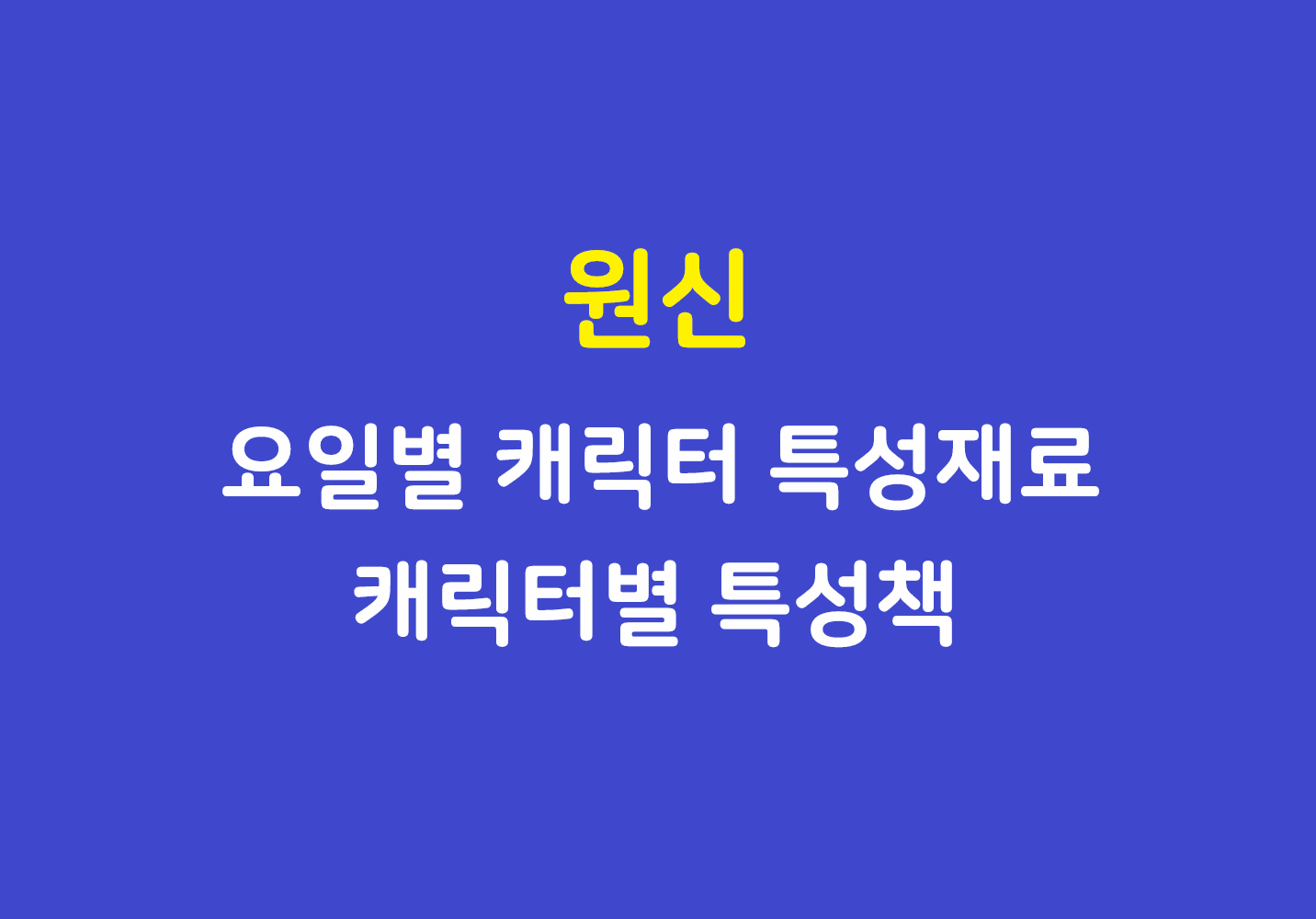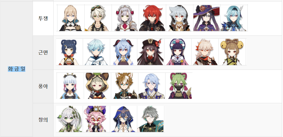 예전에 캐릭터별 특성재료를 정리하여 올린적이 있는데 이후 많은 업데이트로 추가된 캐릭터가 많아서 다시 만들어봤습니다. 원신은 캐릭터 육성시 필요한 재료 중, 특성 레벨업에 필요한 특성 책들은 캐릭터마다 정해진 요일에만 획득할 수 있습니다. 캐릭터별로 한눈에 볼 수 있게 요일별 획득가능한 특성책과 캐릭터들을 표로 정리했습니다.