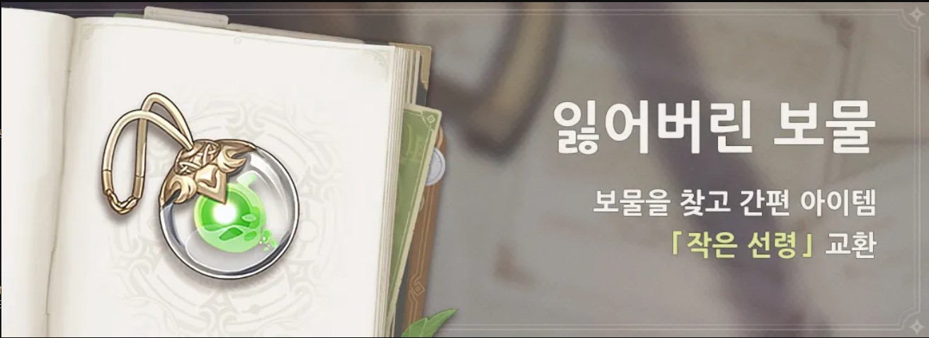 잃어버린 보물은 3.5버전 기준으로 총 3번 진행하였고 이벤트 할때마다 1개의 작은 선령을 얻을 수 있습니다.