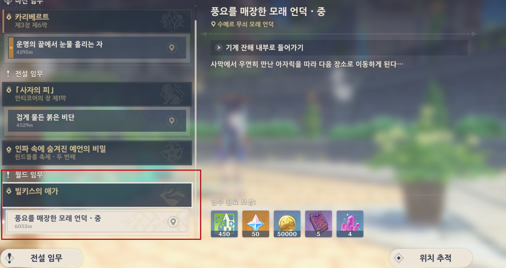 획득 경로 : 월드 임무 '빌키스의 애가' 진행 중 획득