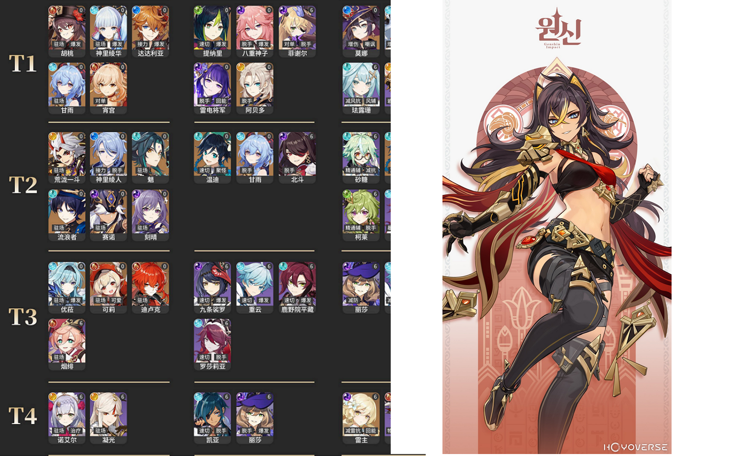 [원신] 3.4 캐릭터 등급표, 캐릭터 티어표 (중국 티어표 VS 북미 티어표)