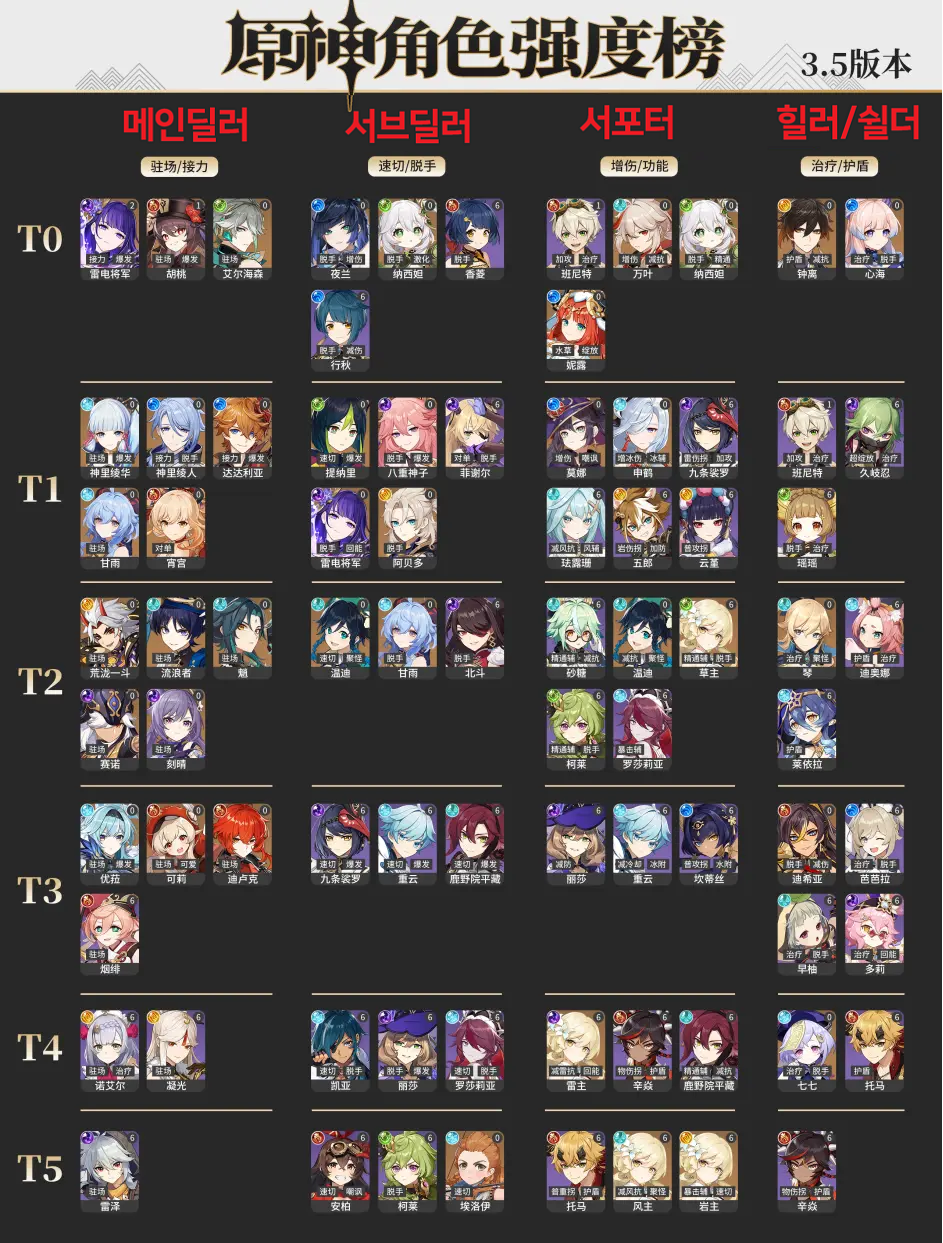 3.5 캐릭터 티어표, 캐릭터 등급표, 데히야 티어표 추가 (중국 티어표 VS 북미 티어표)